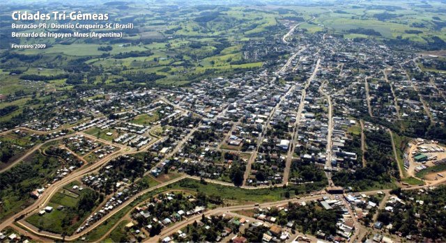 Em 1914, foi criado um Distrito Judiciário com a denominação de Dionísio Cerqueira, com sede no lugar denominado Barracão, no Município de Clevelândia. Havia, na época, uma questão de limites entre os Estados do Paraná e Santa Catarina que foi resolvida em 1916, com a celebração de um acordo entre os dois Estados. Em função desse acordo de limites, Barracão foi dividido em dois, ficando parte no Paraná e parte em Santa Catarina, separadas apenas por uma linha divisória seca. A parte que ficou no Paraná, permaneceu com o nome de Barracão e a que ficou em Santa Catarina, recebeu a denominação de Dionísio Cerqueira, em homenagem ao seu fundador. A cidade fundada no lado Argentino, separada apenas pelo Rio Peperi Guaçu, recebeu a denominação de Bernardo Irigoyen. Desta forma, Barracão no Paraná e Dionísio Cerqueira em Santa Catarina parecem formarem uma só Cidade.