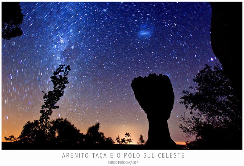 A técnica usada, de acordo c om Sérgio Mendonça, foi a “painting ligth” . “Iluminei (pintei com luz) os arenitos com lanternas, combinando longa exposição no céu. Mas sempre com um clic apenas” .