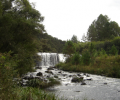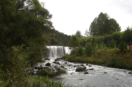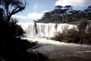 Localizada em uma barragem que foi construída para gerar energia para a própria propriedade, tem 2,5 metros. Abaixo da cachoeira há uma ilha de formação arenosa.