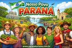 O Paraná dos paranaenses. O povo paranaense descende de uma mistura de raças. Colonizadores portugueses, nativos e escravos africanos (na maioria originários de Yoruba e Quimbundu que, nos dias de hoje, correspondem a Nigéria, Benin e Angola) constituíram a base racial.