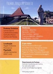 O Passaporte destaca 14 regiões turísticas do Paraná. No material, Palmas é tratada como Berço do Sudoeste, por ser a primeira cidade da região. Em destaque estão os principais produtos turísticos como as Usinas Eólicas, Catedral Diocesana, Santuário Nossa Senhora de Fátima, Museu Histórico, Praça do Senhor Bom Jesus, Pesque e Pague das Trutas e o monumento em homenagem aos tropeiros.